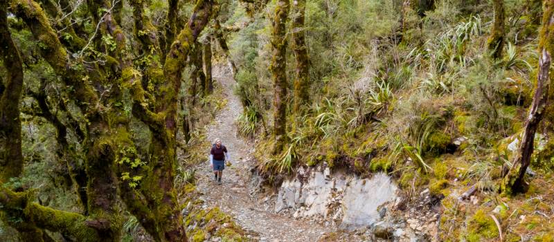 Walk in the footsteps of early gold miners and take in sweeping views over the beautiful Hollyford Valley as you tramp on zigzag alpine trails, forest tracks and along suspension bridges.