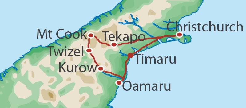 • Starting and ending in Christchurch makes getting here easy. Domestic and international flights fly regularly into Christchurch airport.