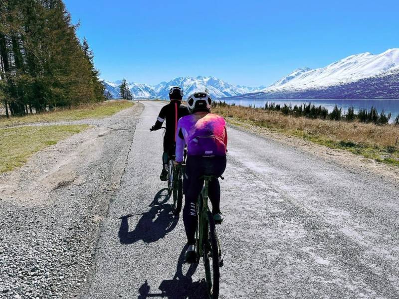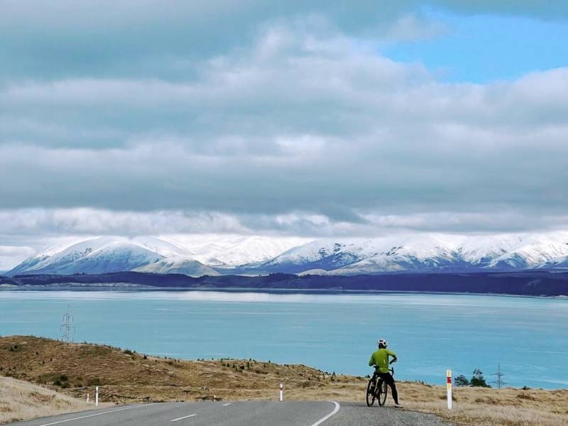 The day had begun with a small hiccup, as I took a wrong turn until the group set me straight. We set off from Twizel, aiming for Omarama, navigating through mixed and challenging terrain. There were muddy patches at the start, but as we cycled alongside Lake Ohau, the scenery was captivating, especially the stretch from Ohau Weir to Ohau Lodge amidst the backdrop of snow-capped mountains.