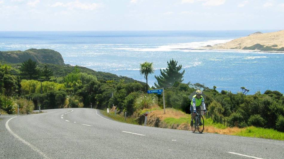 Road cycling along the coastline of Northland New Zealand